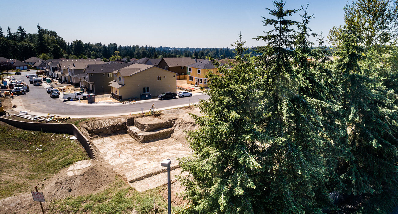Like all projects, the Addison Park project came with a set of unique challenges. First, the job required a complex storm drainage design—complete with three separate cast-in-place concrete detention vaults. In addition, our team was tasked with a detailed grading design, which included both daylight basement lots as well as a series of retaining walls to fit the site constraints. Finally, the project was phased so that new home construction could begin while the land development construction continued throughout the remaining portion of the site.
