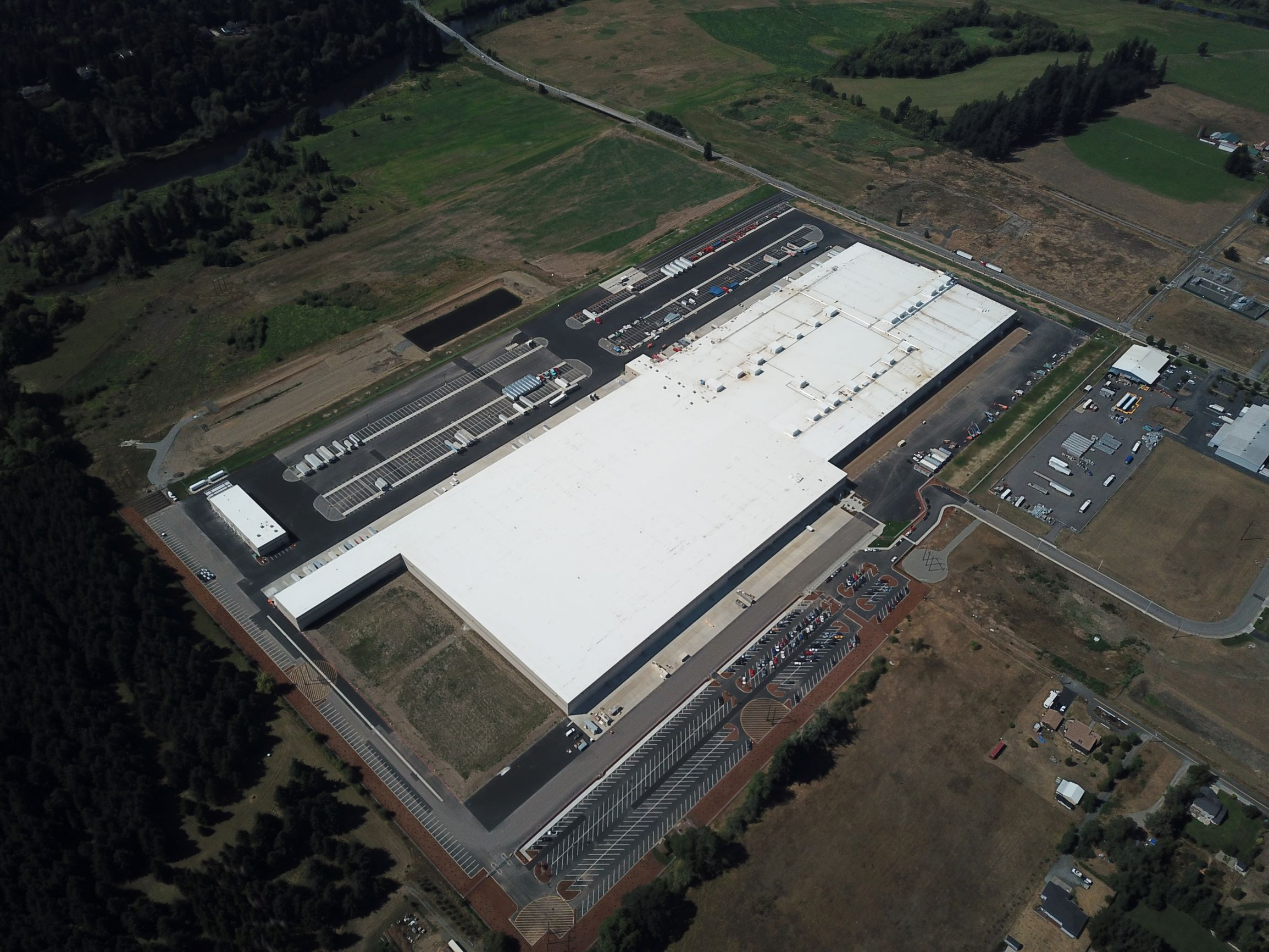 The Centralia Distribution Center is located in Chehalis, WA with over 1-million sf of industrial space. This project was spearheaded by O'Keefe Development who contracted Barghausen for civil engineering design, permitting and land surveying services. The project consisted of developing a 1.2m sf warehouse on a 77-acre site. The warehouse features 160 loading docks, cooler and freezer storage, an adjacent maintenance building with covered fueling islands, above ground fueling tanks, and a truck wash.